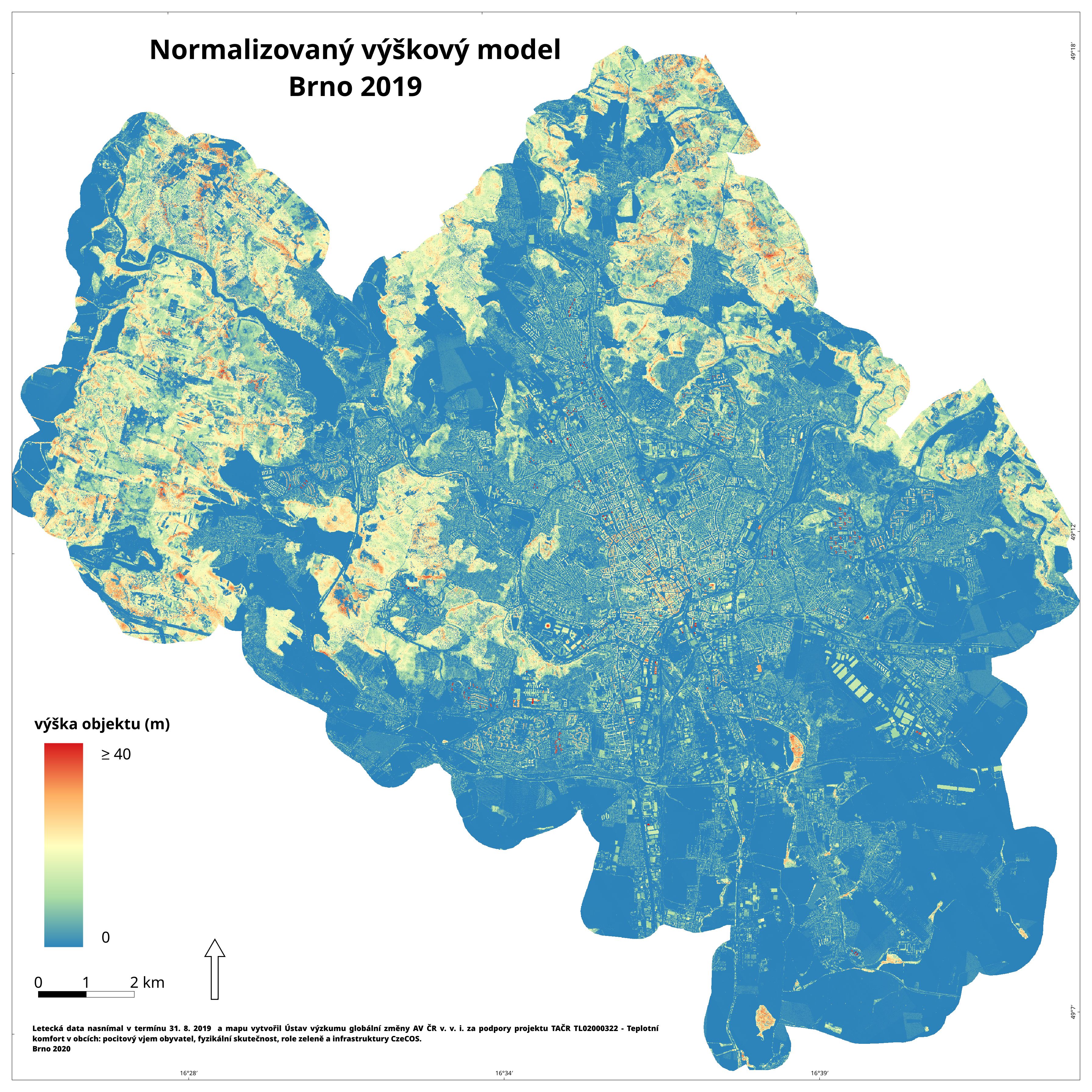 Výška objektů (m) nad terénem.
