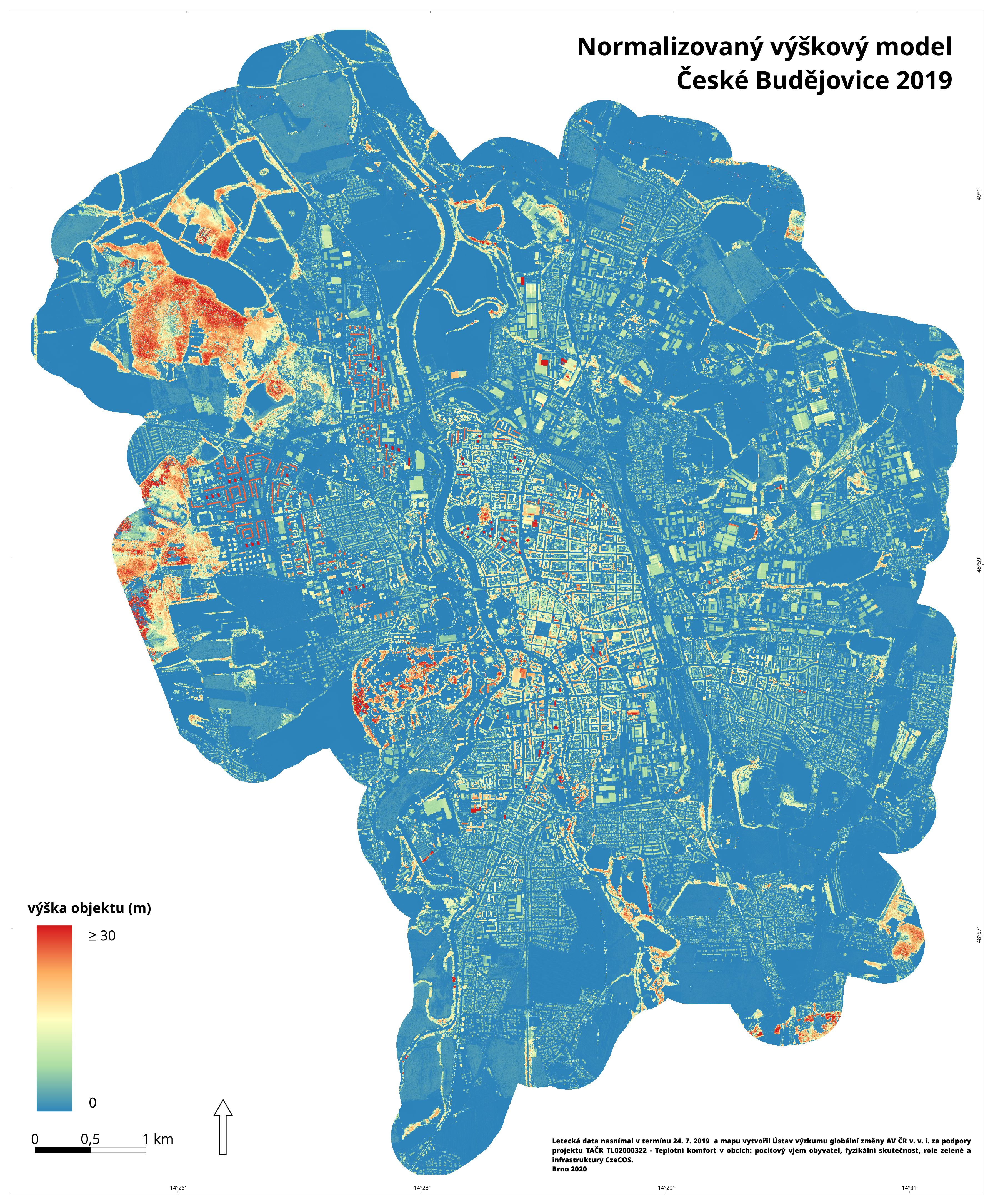 Výška objektů (m) nad terénem.